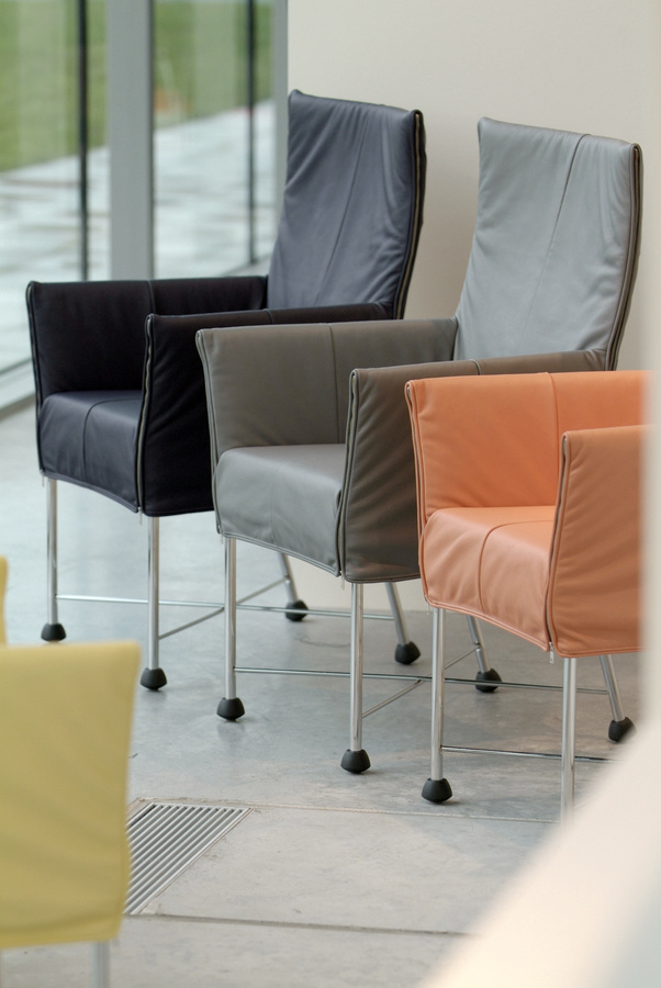 De Chaplin-stoel is stijlvol bekleed als een kledingstuk. Dit met een gewatteerde hoes die nonchalant valt en sluit met ritsen. Perfect voor een comfortabele eethoek of gespreksruimte. De versie op wielen maakt Chaplin ook ideaal voor een werkruimte.