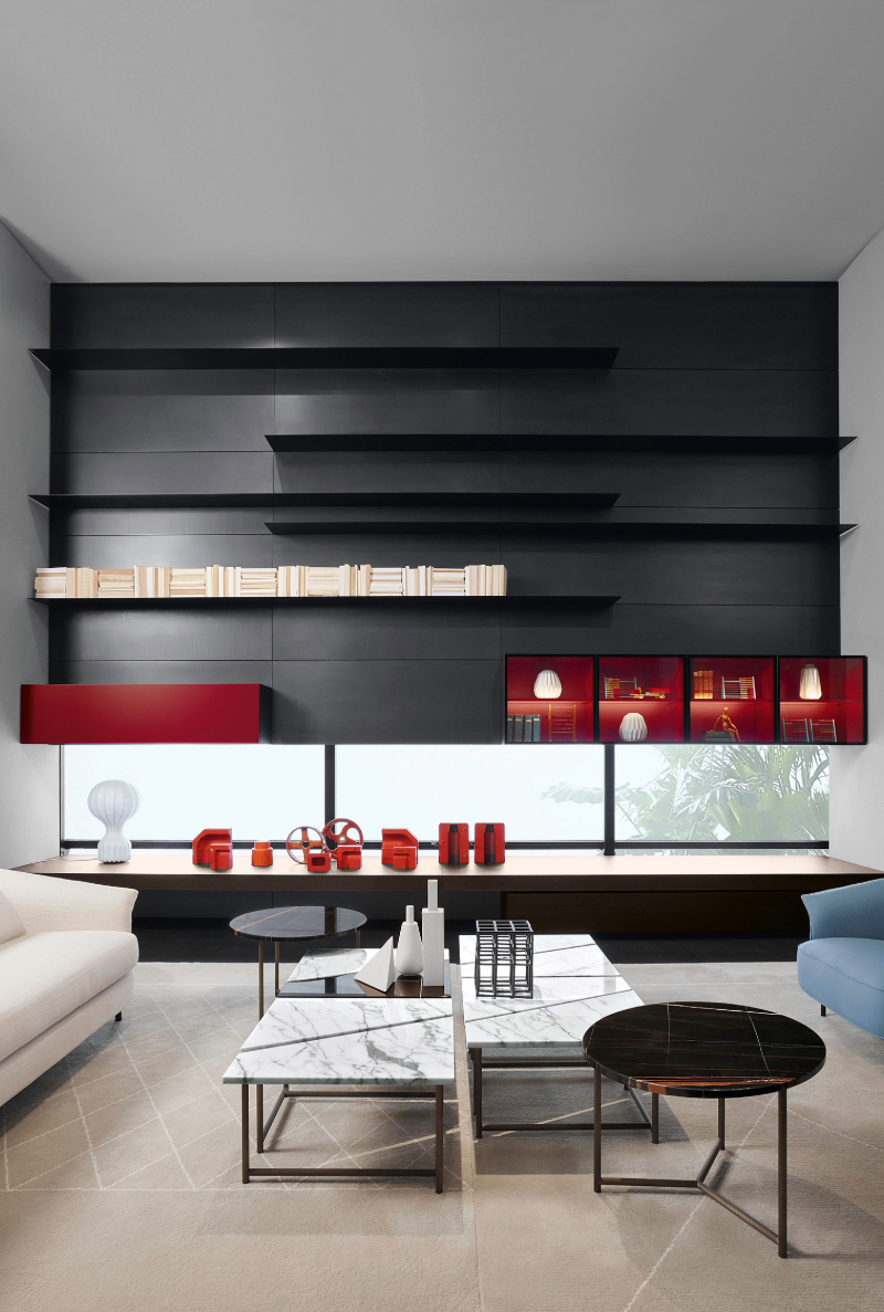 System is een veelzijdig en flexibel opbergsysteem voor thuis en op kantoor. Dankzij de hoogwaardige afwerking en variabele indeling past het zich moeiteloos aan elke stijl aan, van klassiek tot modern. Te gebruiken als boekenkast, mediameubel, werkplek of roomdivider.