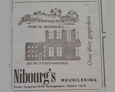 In januari 1930 begint het verhaal. Hier vindt de start van Nibourg wooninrichting plaats, aan de Hoogstraat 56 te Zwolle.